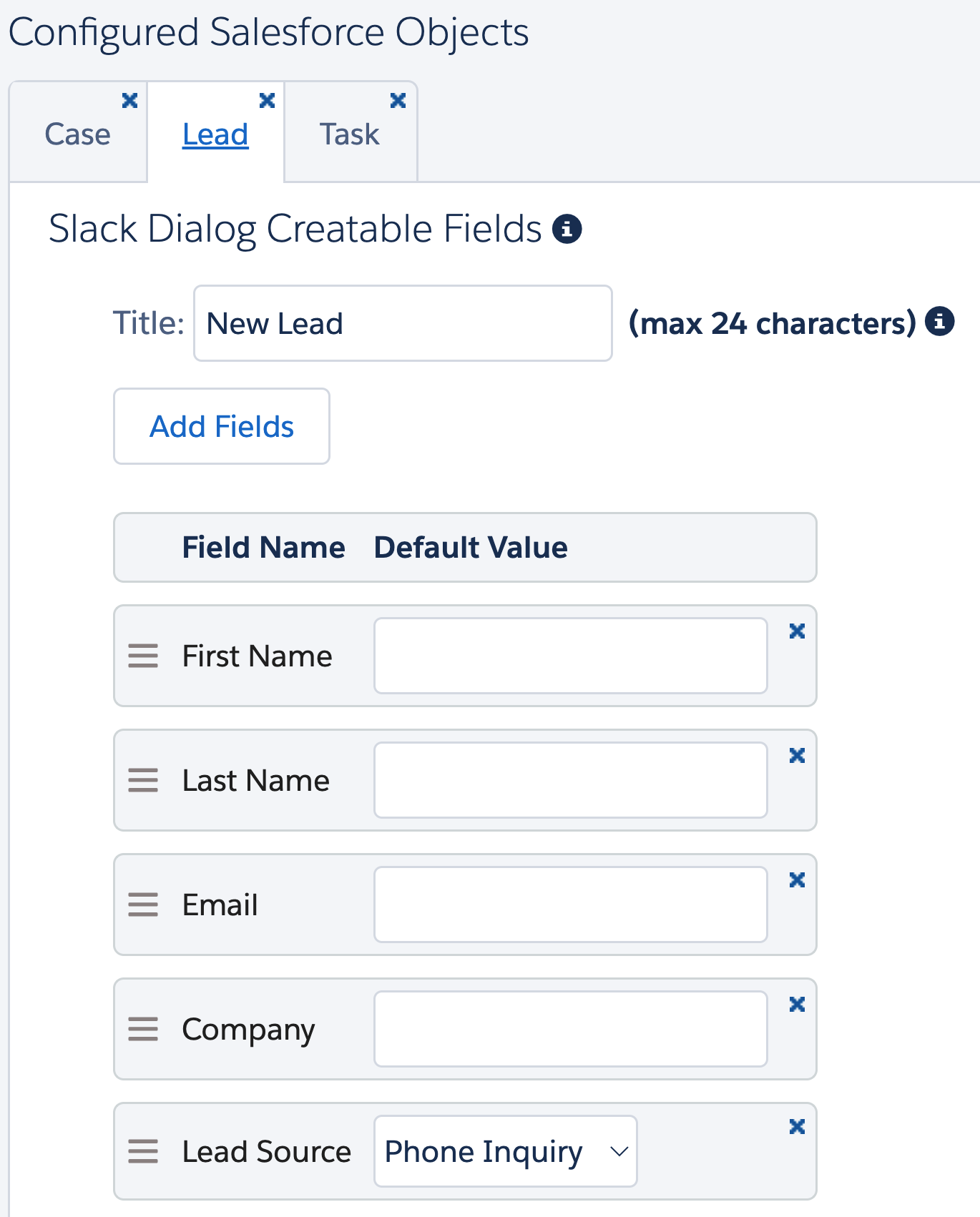 Configuring Salesforce Objects Creatable from Slack