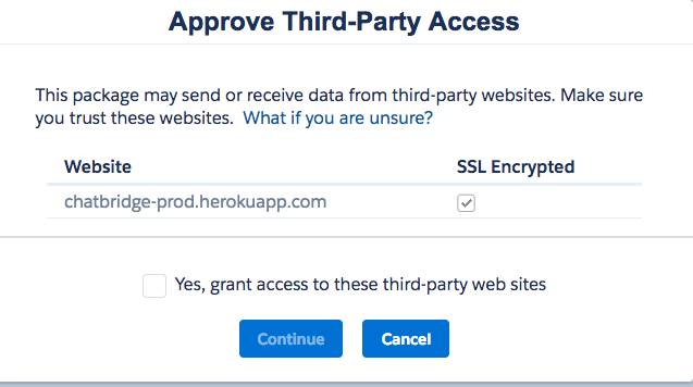 Installing Chat:Bridge Package in Salesforce Org