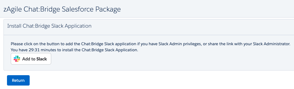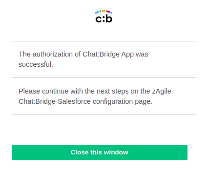 Following successful authorization, you are directed back to the Chat:Bridge configuration page in Salesforce.