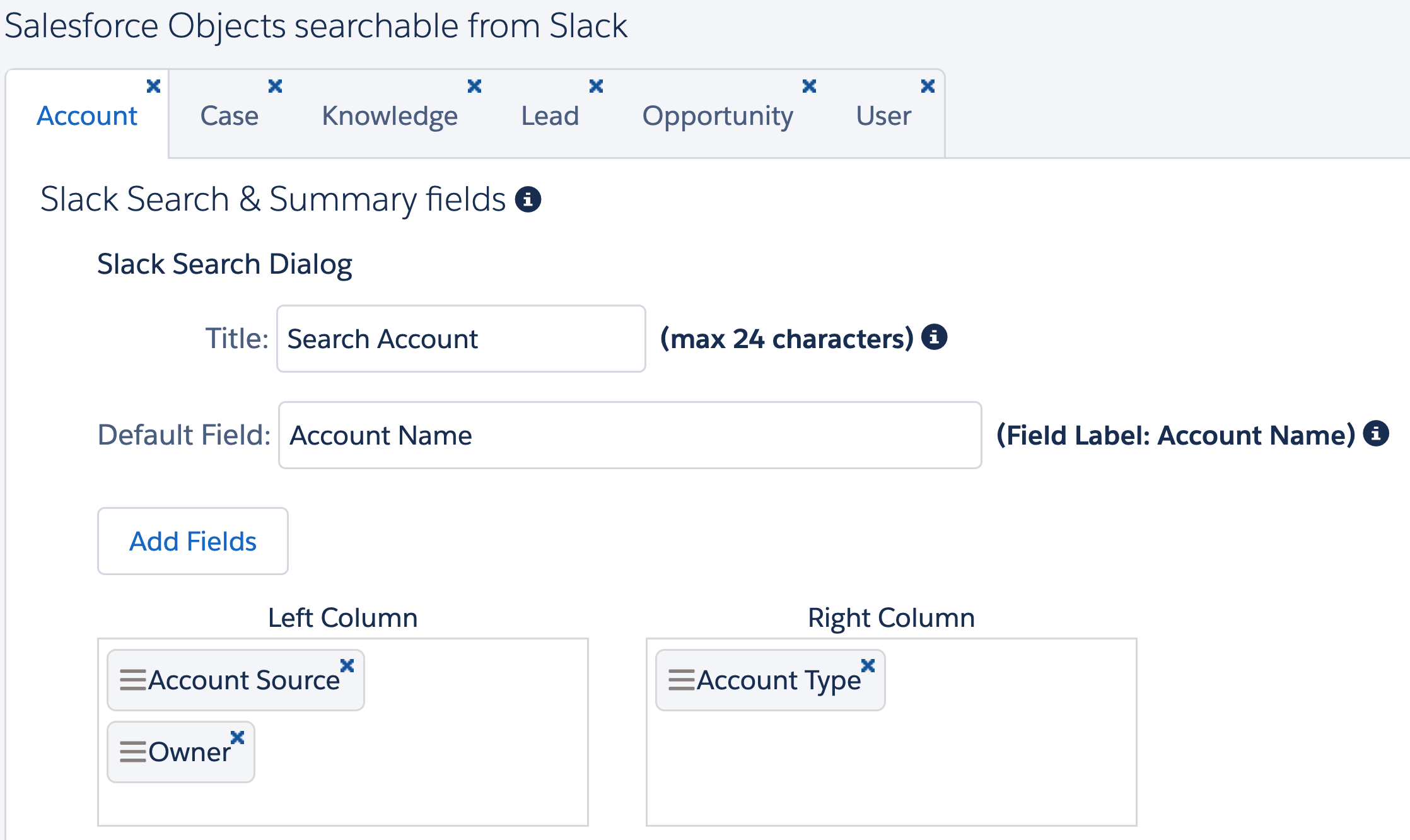 Fields to be used in search criteria and search results must be accessible to both the Slack Integration user and the Slack User executing the search command from Slack.