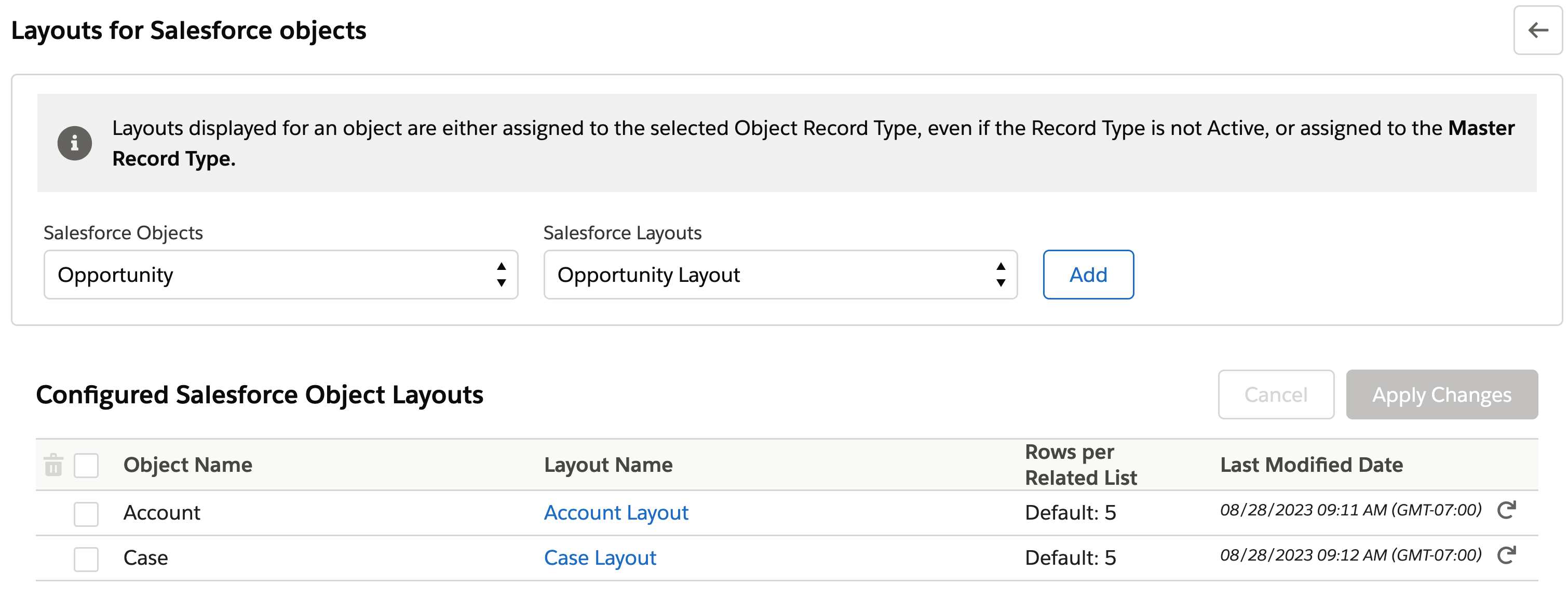 Configuring Layouts for Salesforce Objects to be shared with Slack