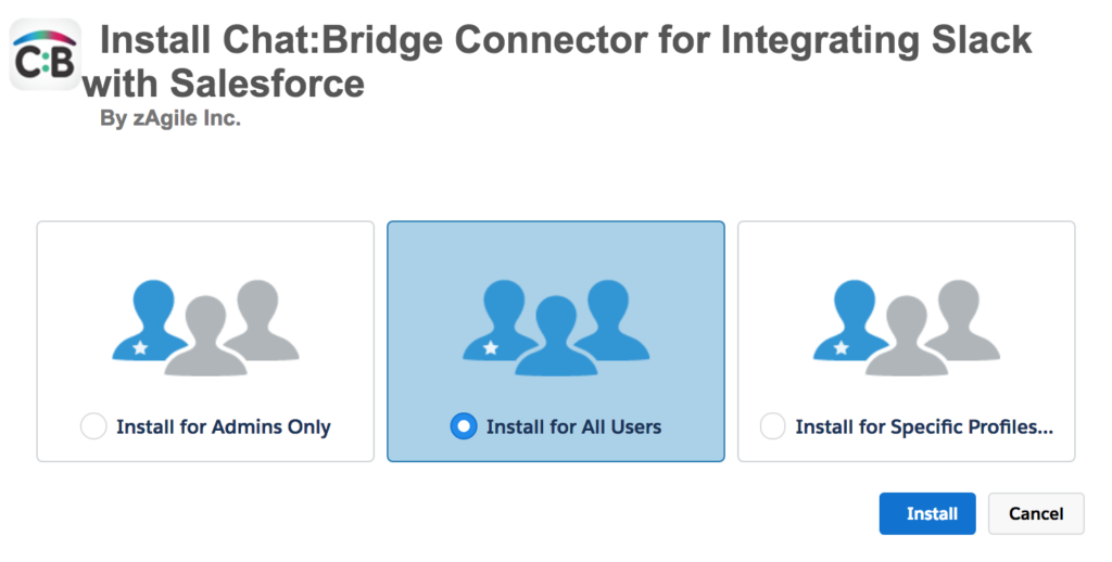 Access to Chat:Bridge by specific users in a production Salesforce org will be managed by the package license. Therefore, it is strongly advised that it be installed for all users. Specific users for whom it must be enabled may be added to the package license after the installation.