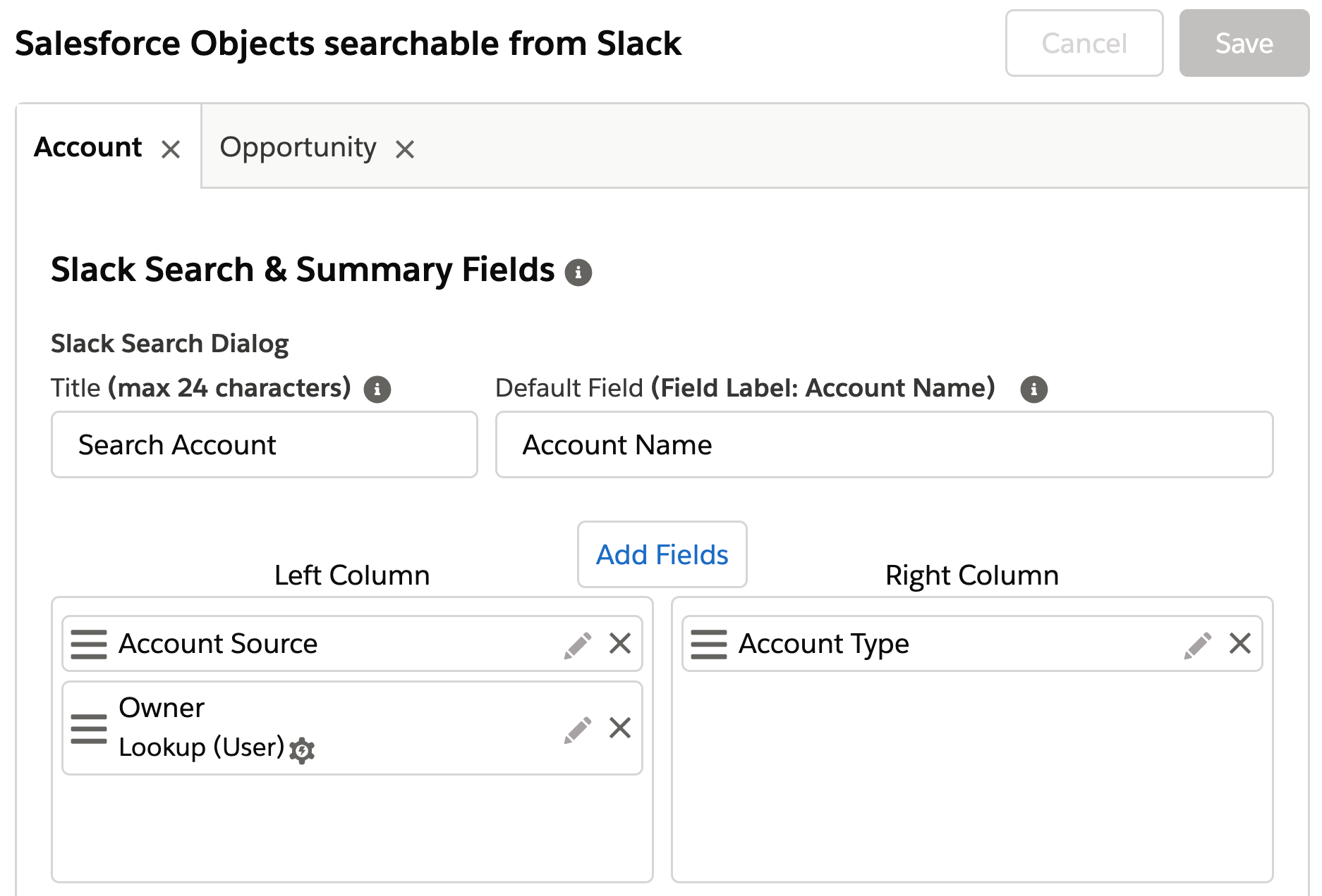 Fields to be used in search criteria and search results must be accessible to both the Slack Integration user and the Slack User executing the search command from Slack.