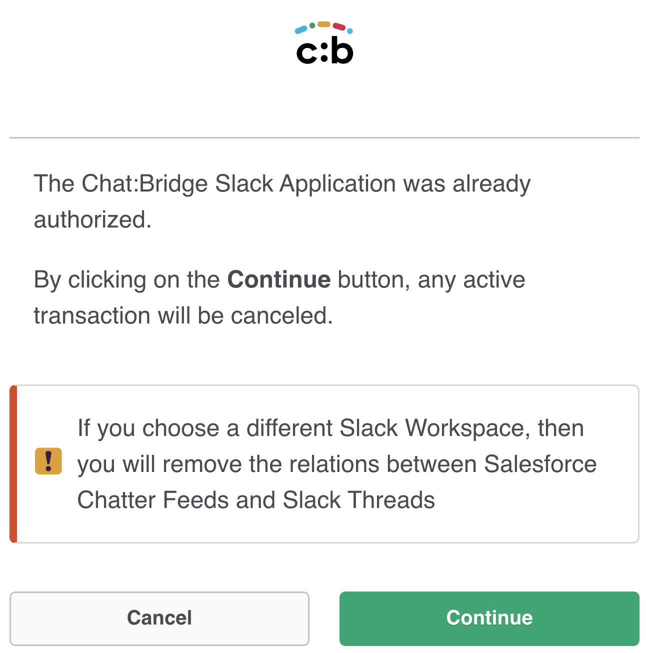 Re-authorize Chat:Bridge Slack App