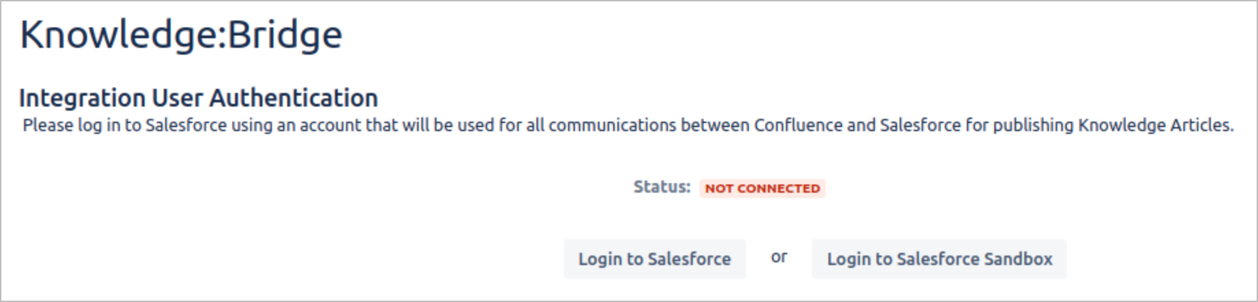 log in to Salesforce using an account that will be used for publishing Confluence pages to Salesforce Knowledge Articles