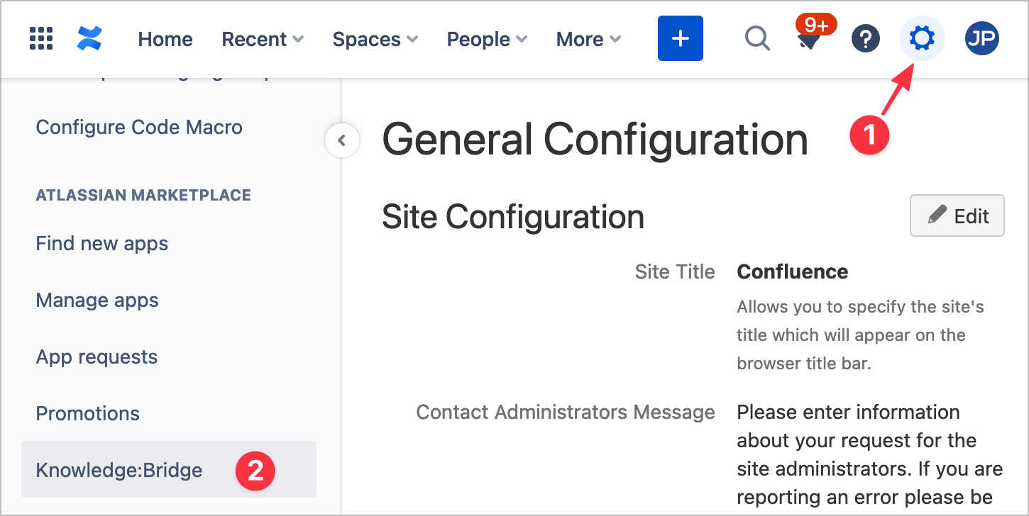 In Confluence Settings → Knowledge:Bridge,