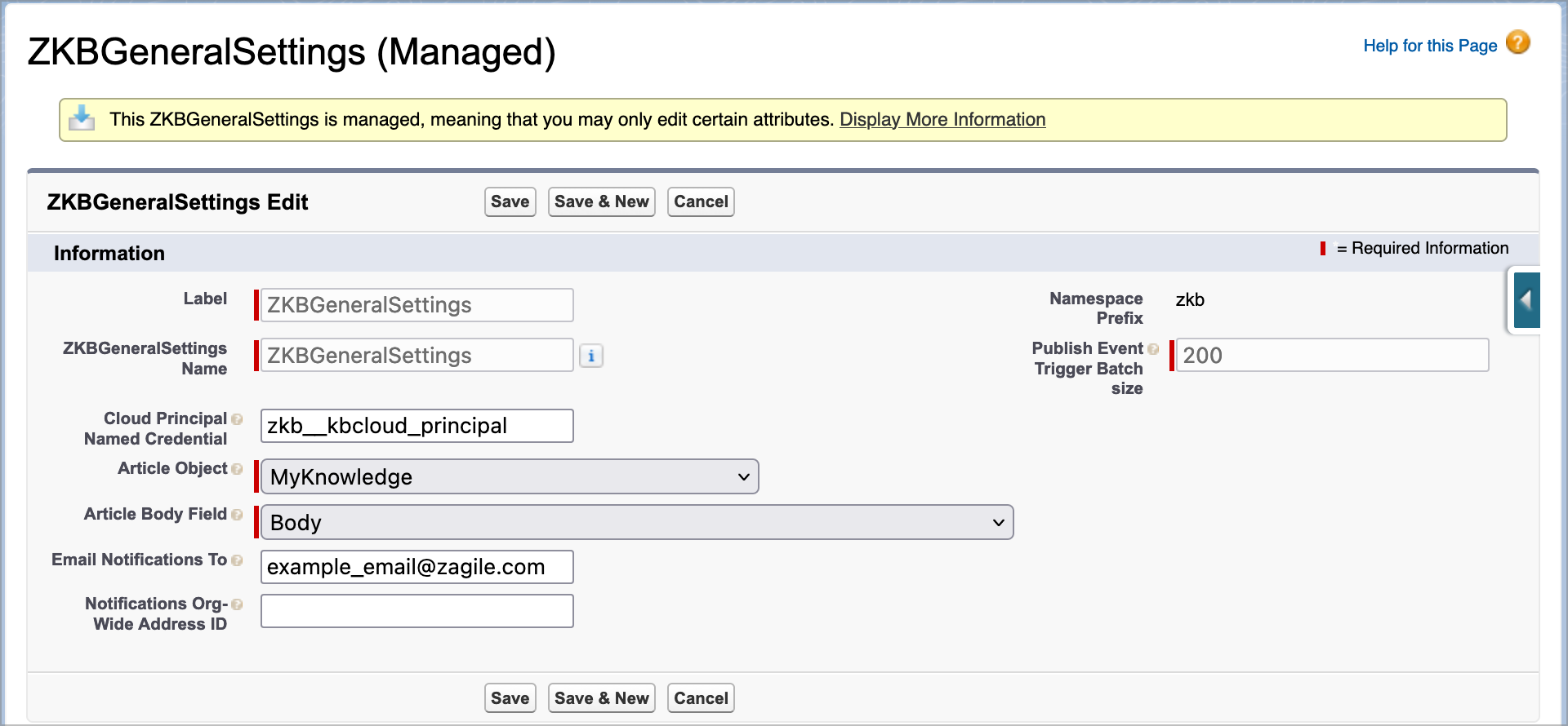 Edit the ZKBGeneralSettings record with the following fields:
