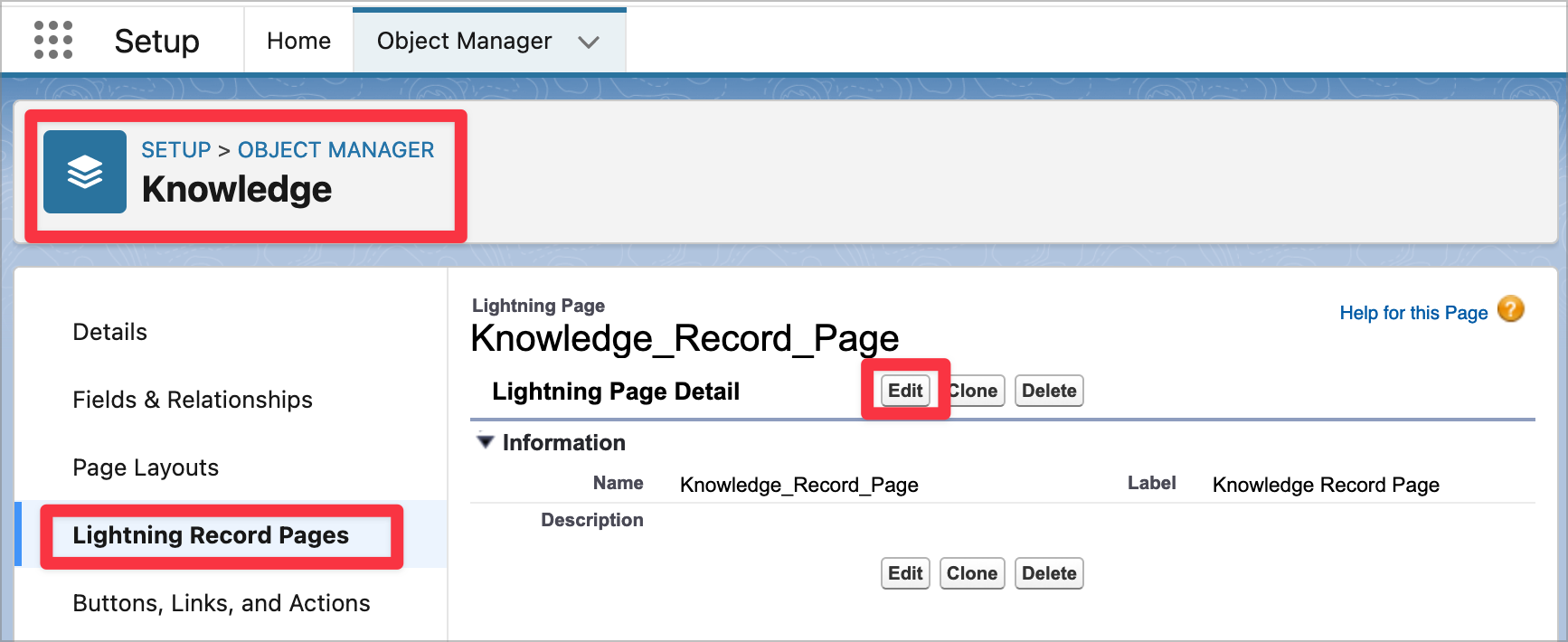 Edit your Knowledge Lighting Record Page in Salesforce Object Manager