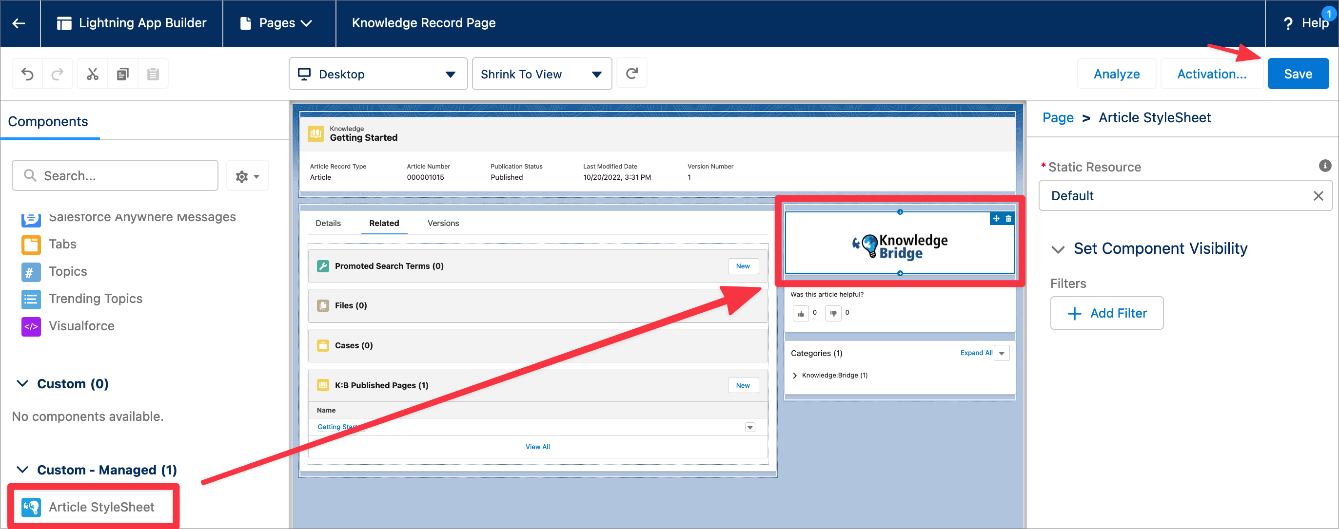 Add the Article StyleSheet Lighting Web Component somewhere in the page and save