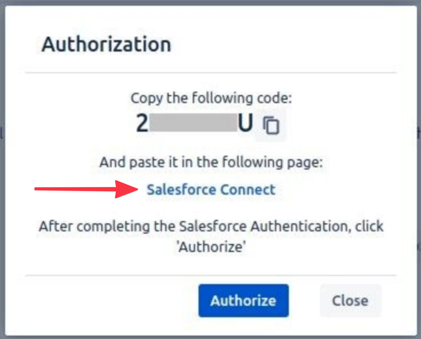 and follow the directions to copy the authentication code provided