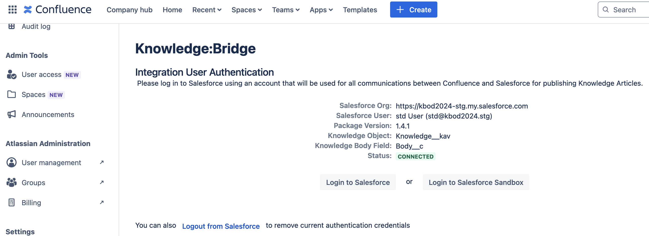 Authenticate to Salesforce for publishing Confluence pages to Salesforce Lightning Knowledge Articles