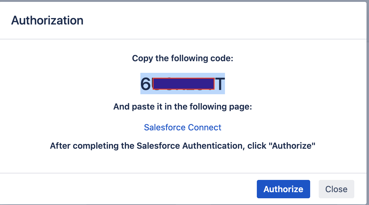 Once authentication is successful, go back to the dialog above to 'Authorize' Confluence to Salesforce.