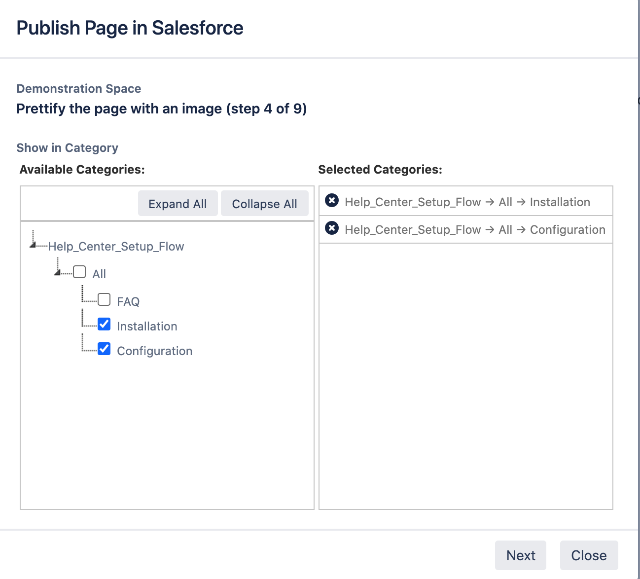 Selecting/Confirming the Categories to assign to the Article in Salesforce