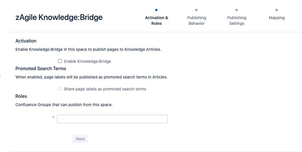 - Activation – Enabling the Confluence Space for publishing to Salesforce. One or more Spaces within Confluence may be enabled. Once enabled, the options for publishing pages to Salesforce Knowledge become configurable.