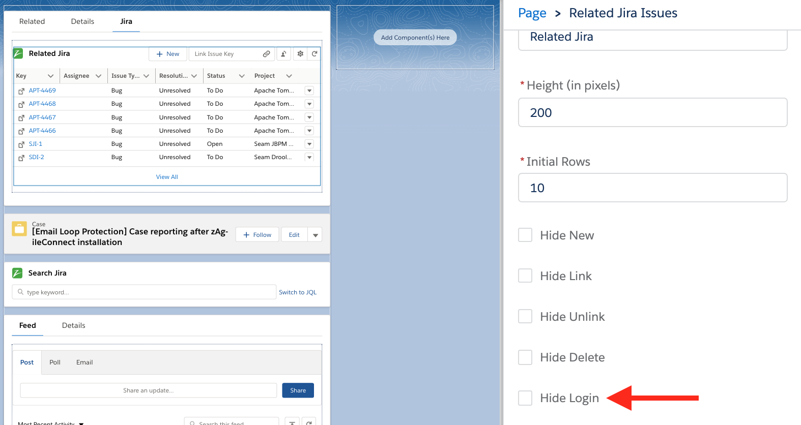 To allow Salesforce users to optionally use their own Jira accounts to perform Issue actions from Salesforce, zAgileConnect provides a configuration option via the Related Jira Issues Lightning Web Component.