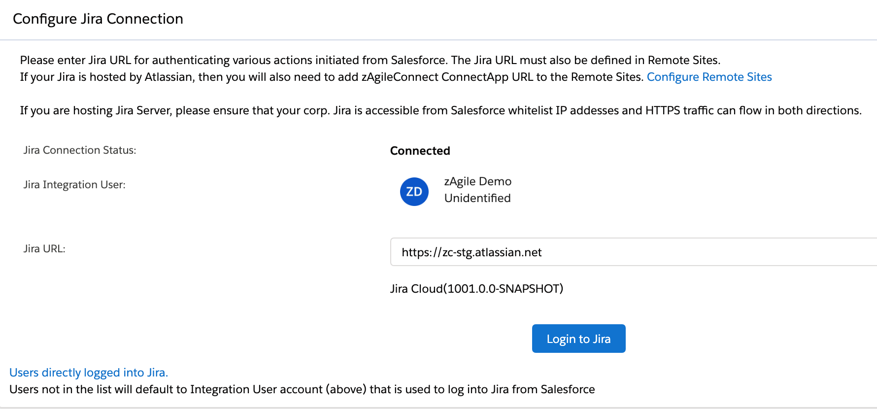 zAgileConnect integration between Salesforce and Jira does not require a user in one application to have an account in the other to be able to perform available actions.