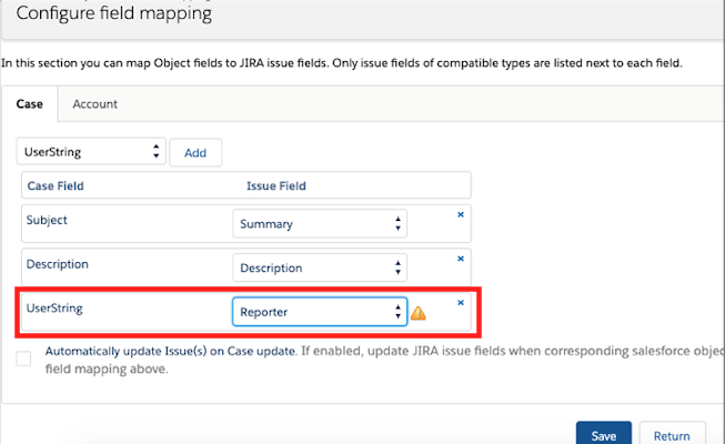 • The Salesforce field (source) mapped to Jira User must be of type ‘Text’