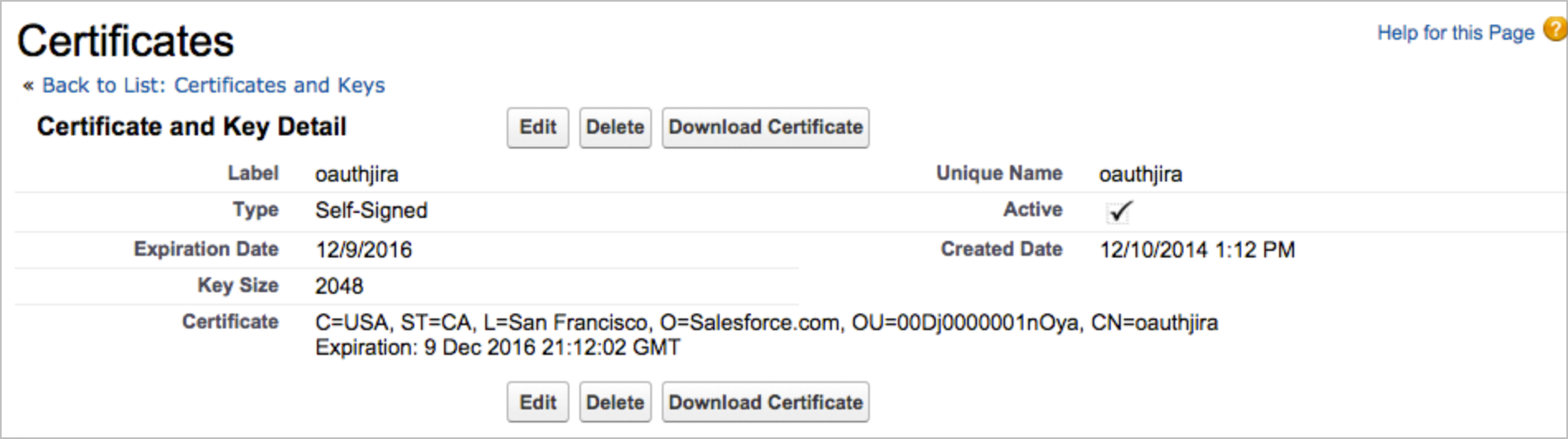– oauthjira, Self-Signed, expires on 11/23/2017. Warning: This certificate will expire in 30 day(s).