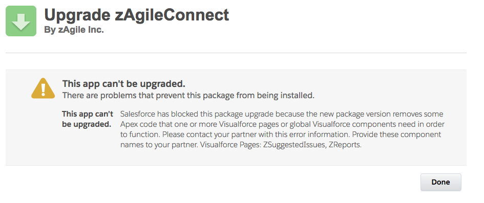 When upgrading zAgileConnect Salesforce package, please make sure to also perform the requisite upgrade to the Add-on in JIRA to make sure that the two components are compatible with each other.