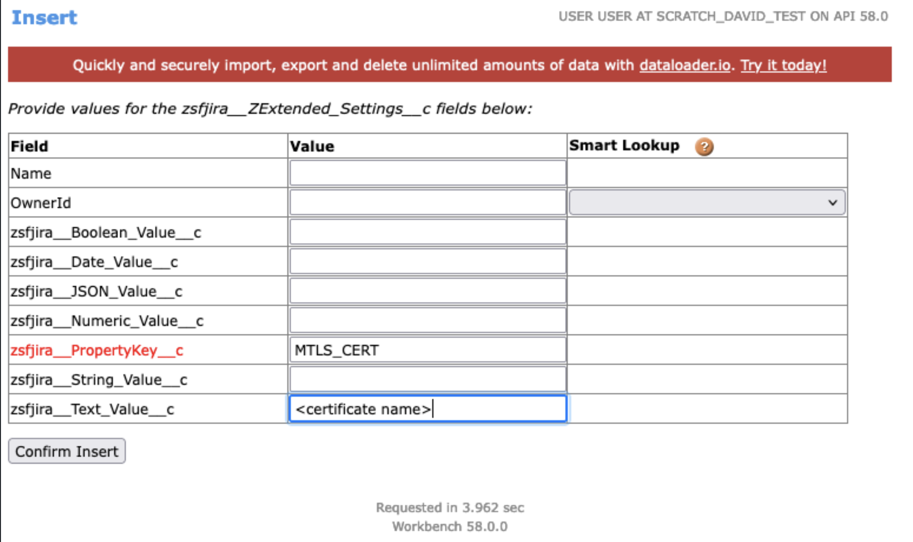zsfjira__Text_Value__cfield.Confirm the insert.