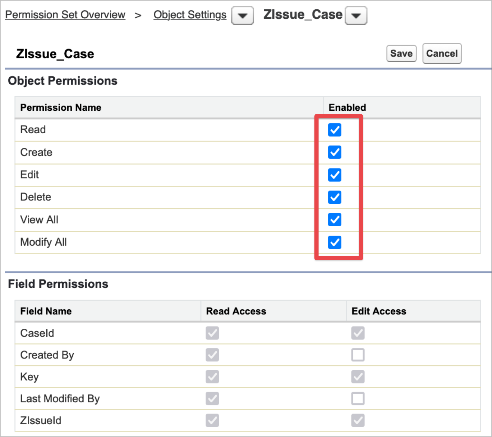 4. Grant View/Edit permissions on the junction object that represents the relationship between Salesforce object and ZIssue.