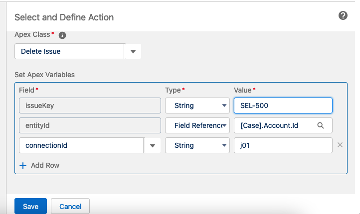 Select the Apex class ‘Delete Issue’ and specify a Case ID and Issue Key.