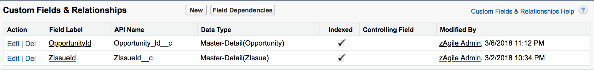 Next, we define a Master-Detail relationship with ZIssue.
