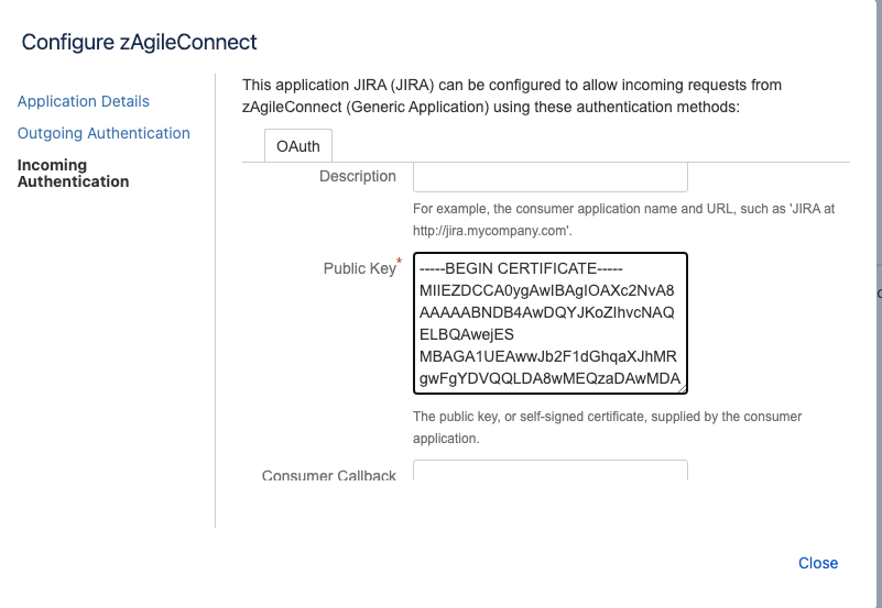 Paste the certificate downloaded from Salesforce in the Public Key text box (as shown below).
