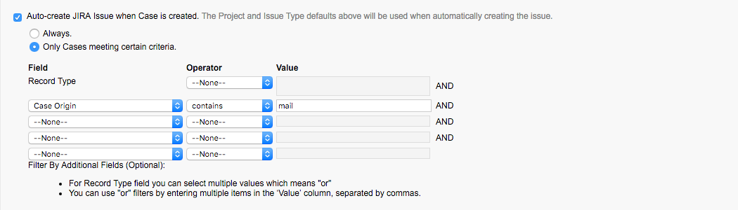 Filters for Auto-creation of JIRA Issue on Case Creation