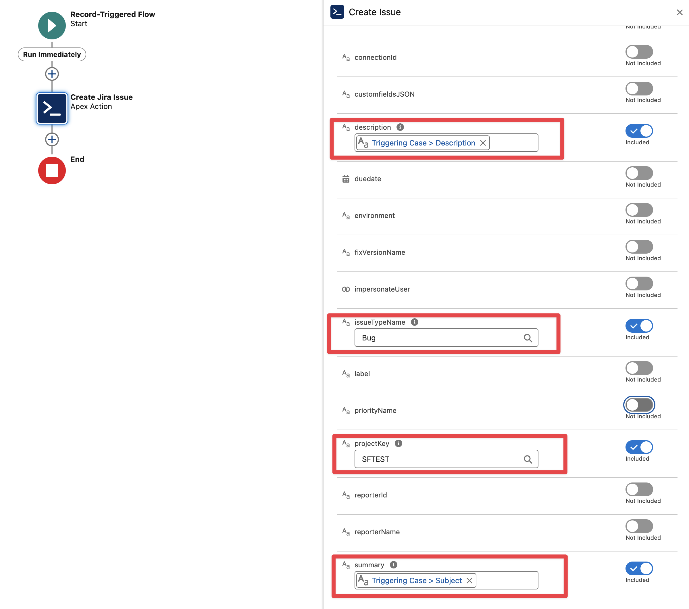 For example if summary and description are mapped in Step 6, then the Create Issue action will use those values for those fields when creating the Issue if no values are provided in the Flow Builder.