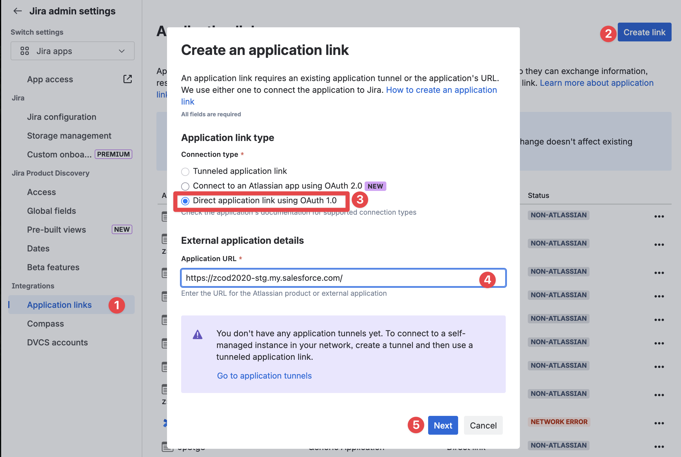Adding Salesforce to JIRA Application Links