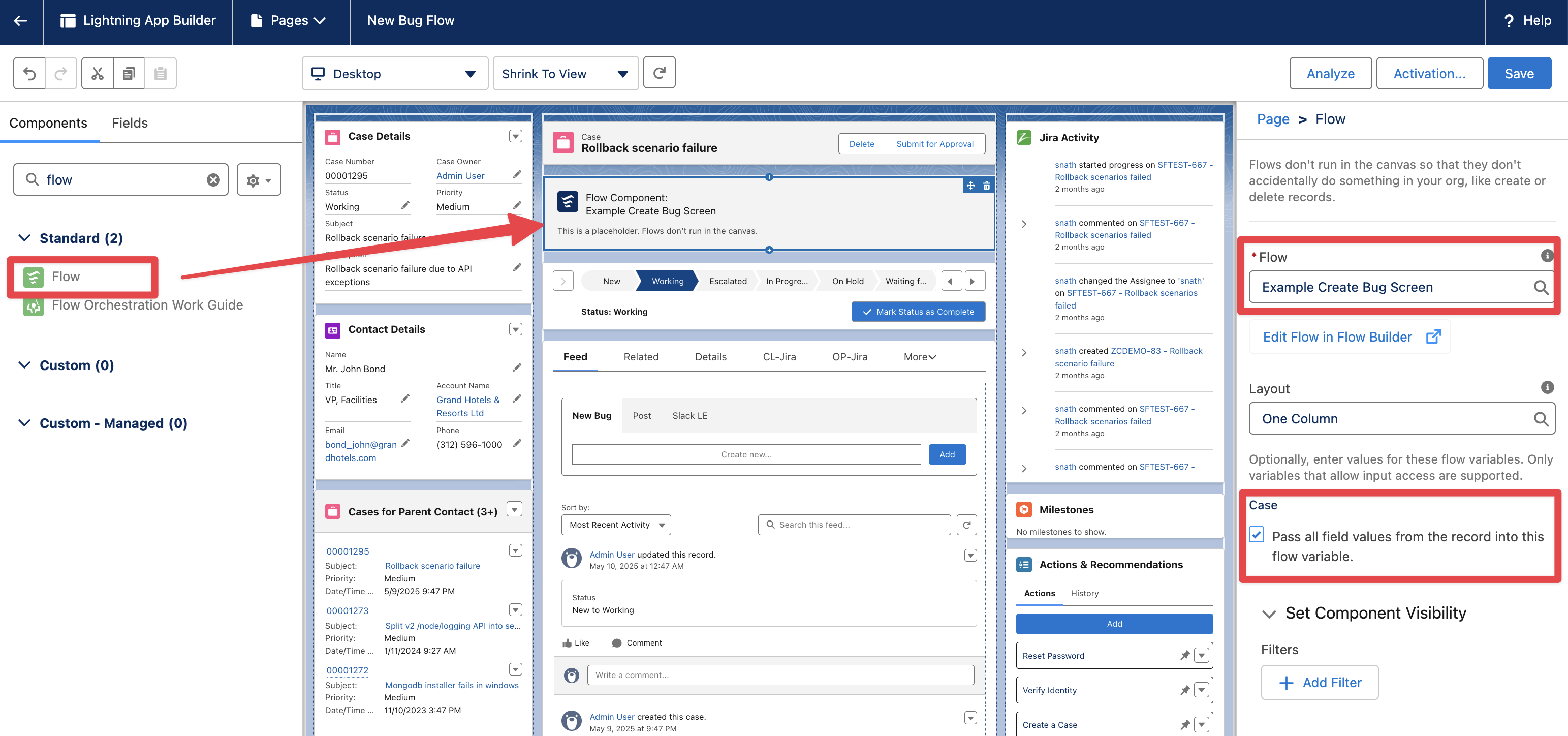 The following example will display a simple Create Bug Flow Screen that can be added to a Case Page Layout.
