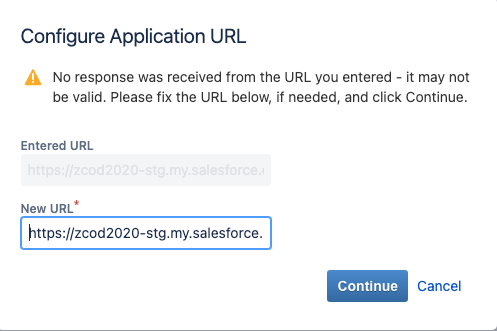 In Jira Administration → Applications → Application Links, create a new link for Salesforce, using the URL of your Salesforce instance (example: https://zcod2020-stg.my.salesforce.com/)