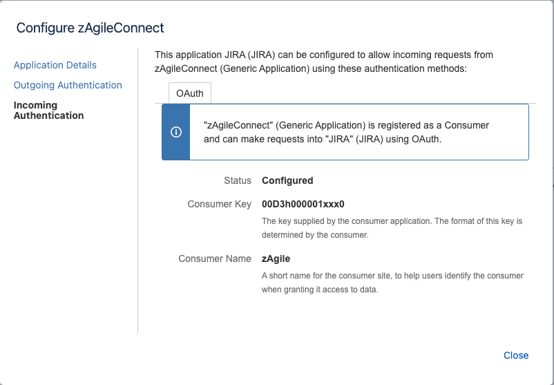 Consumer Key (as shown below) must be the ID of the Salesforce Org which will log into Jira