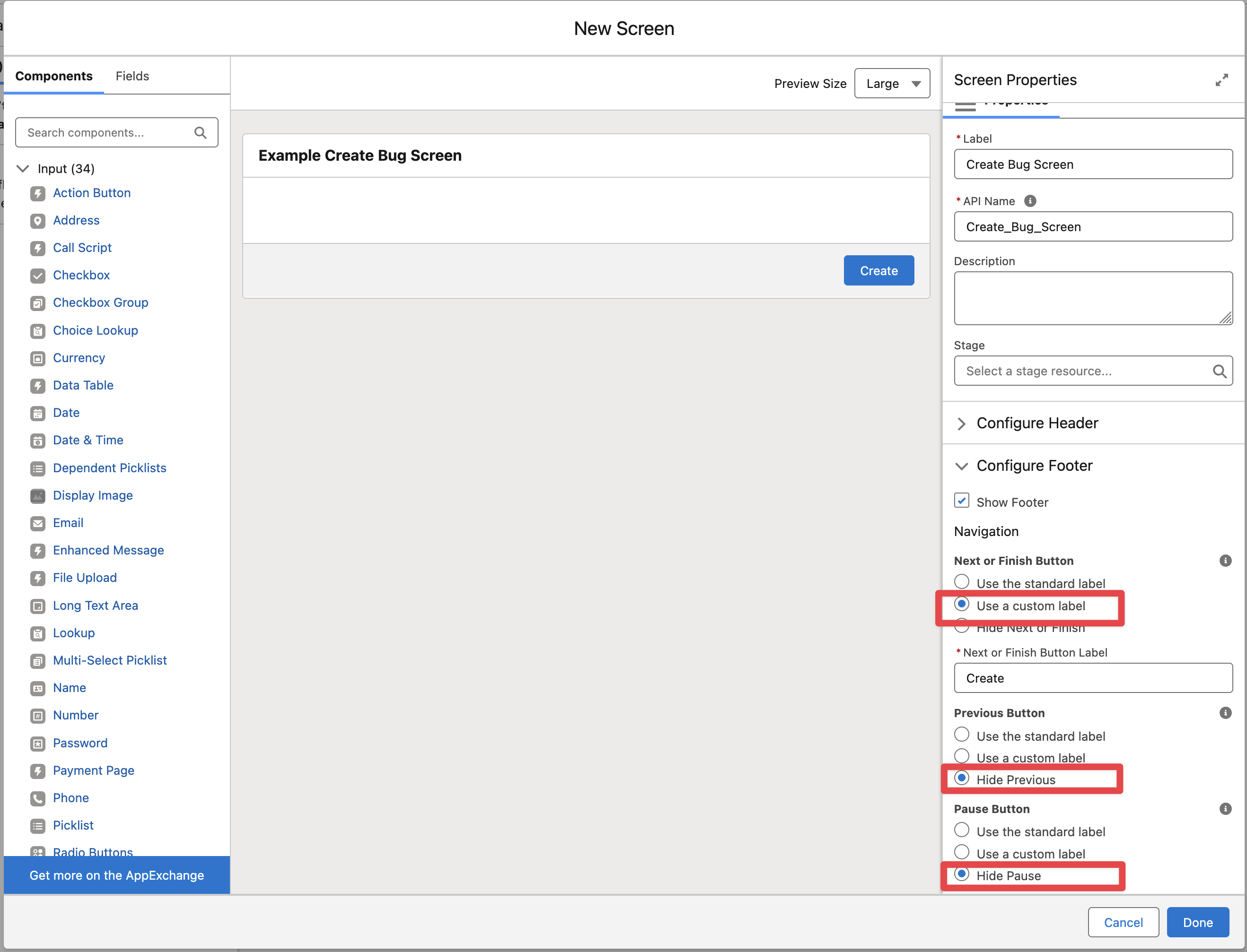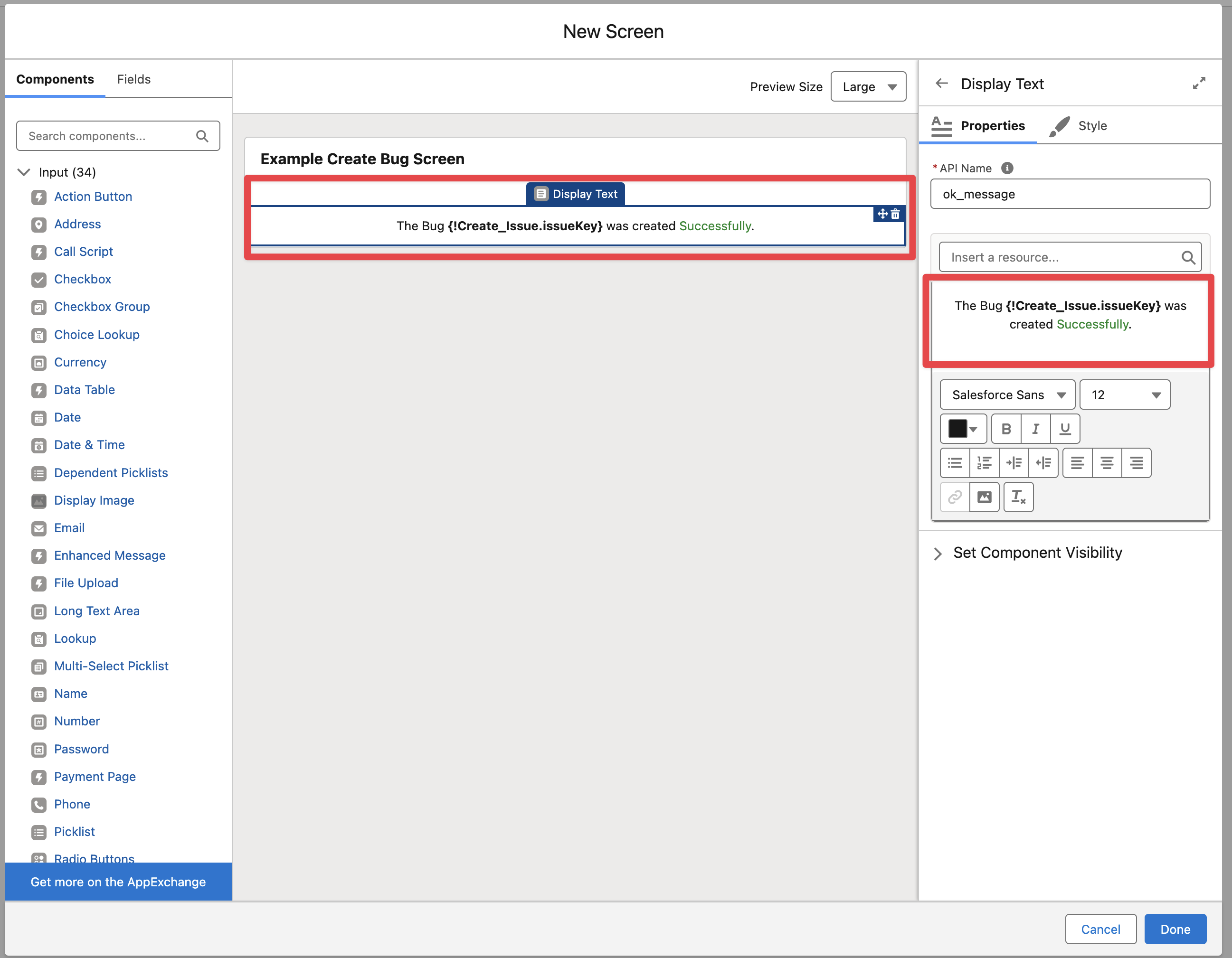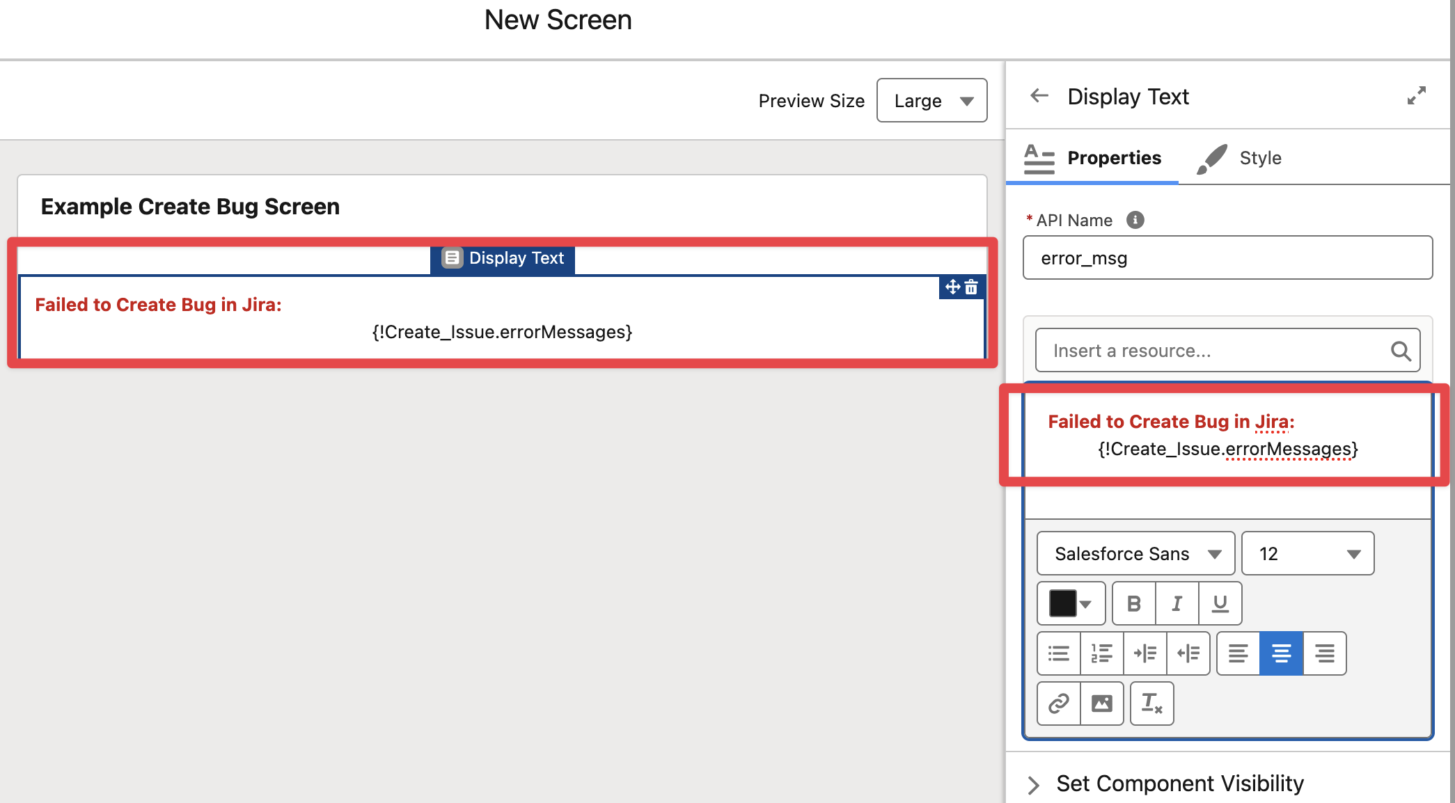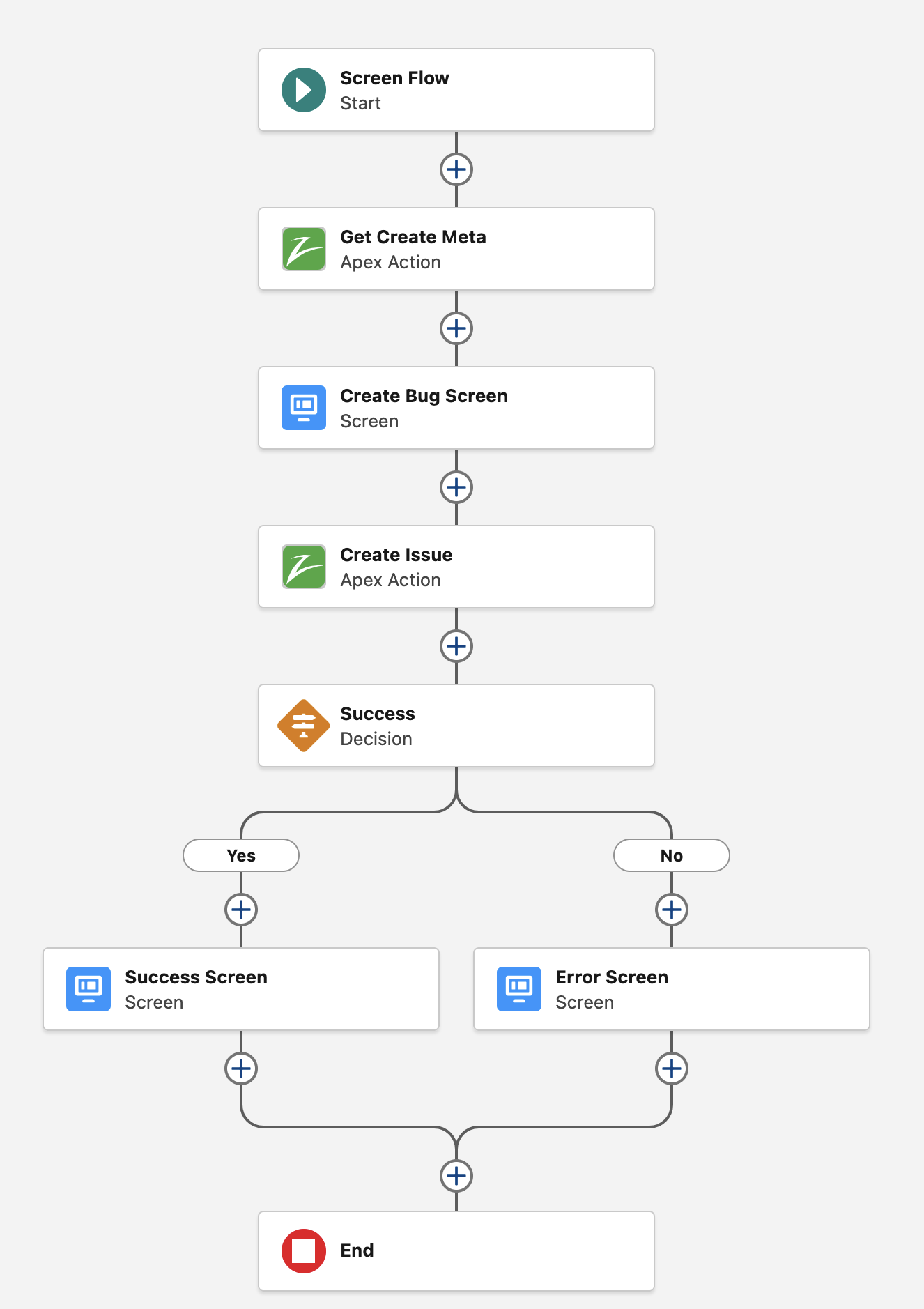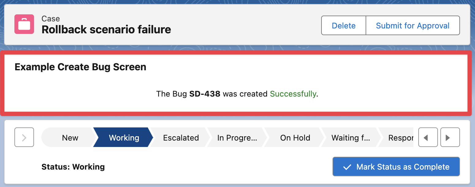 The following example will display a simple Create Bug Flow Screen that can be added to a Case Page Layout.
