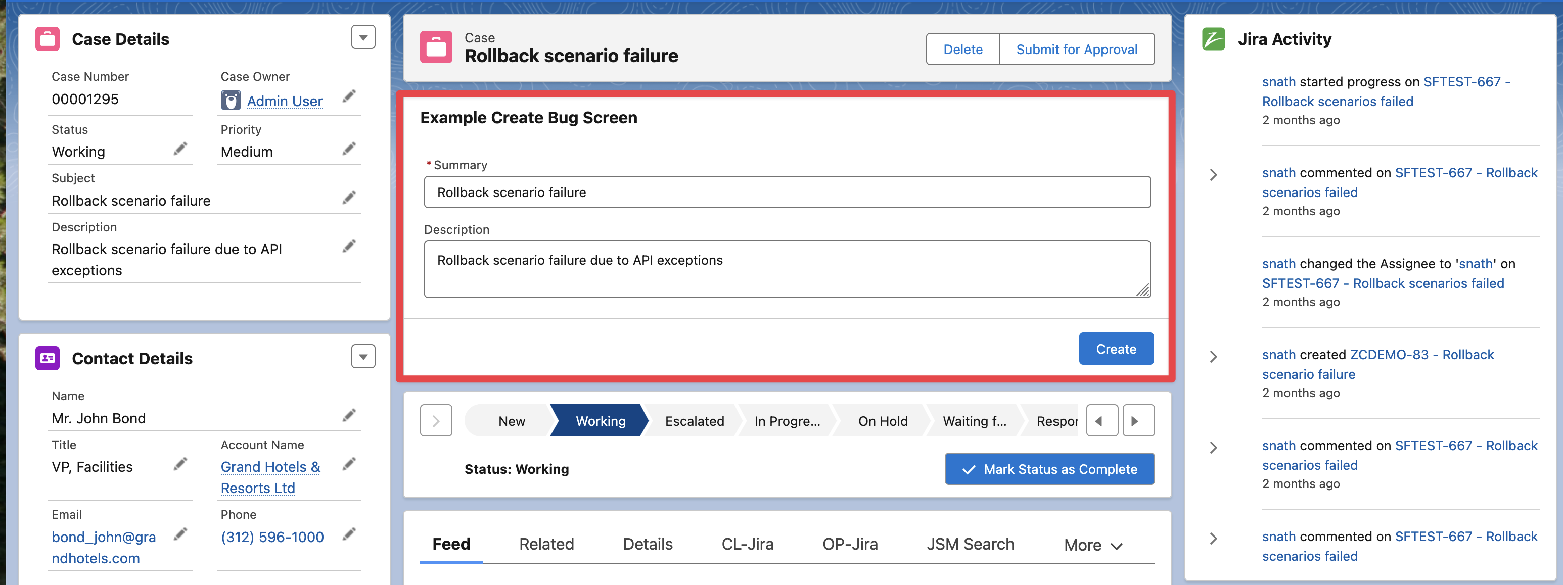 The following example includes a Jira text custom field to the previous example.