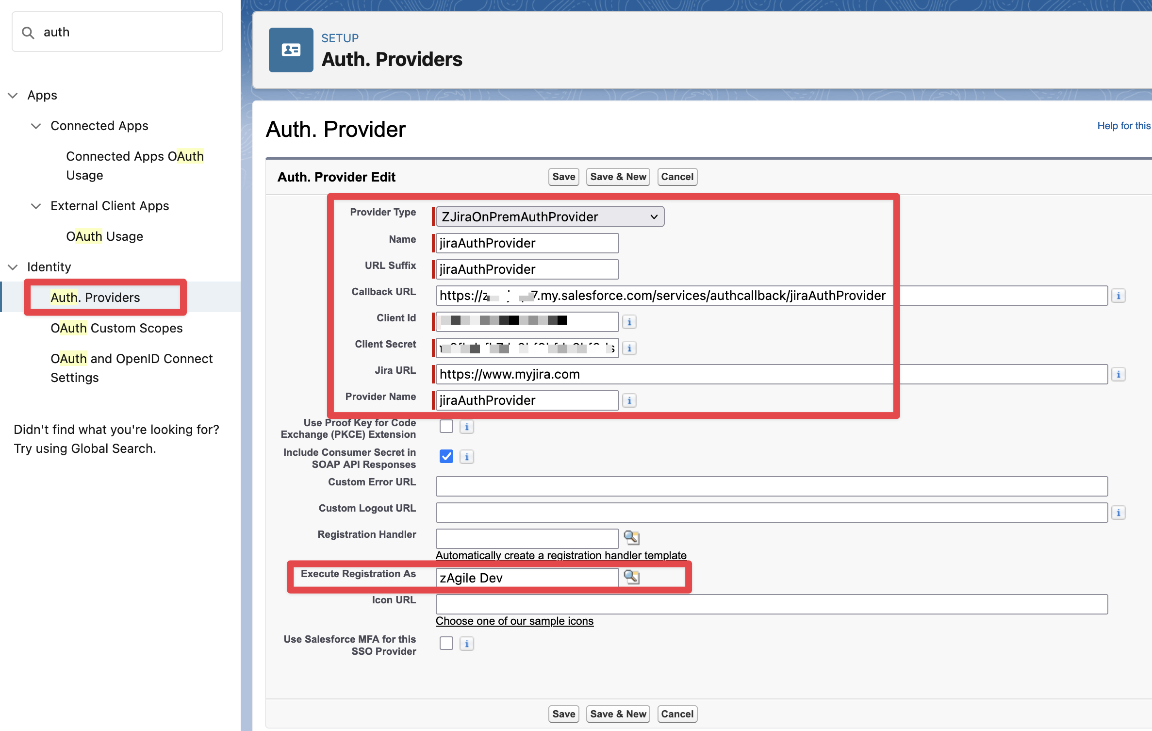 Note: Execute Registration As is a Required Field for an Auth Provider. However it is not relevant for the zAgileConnect OAuth 2.0 setup.