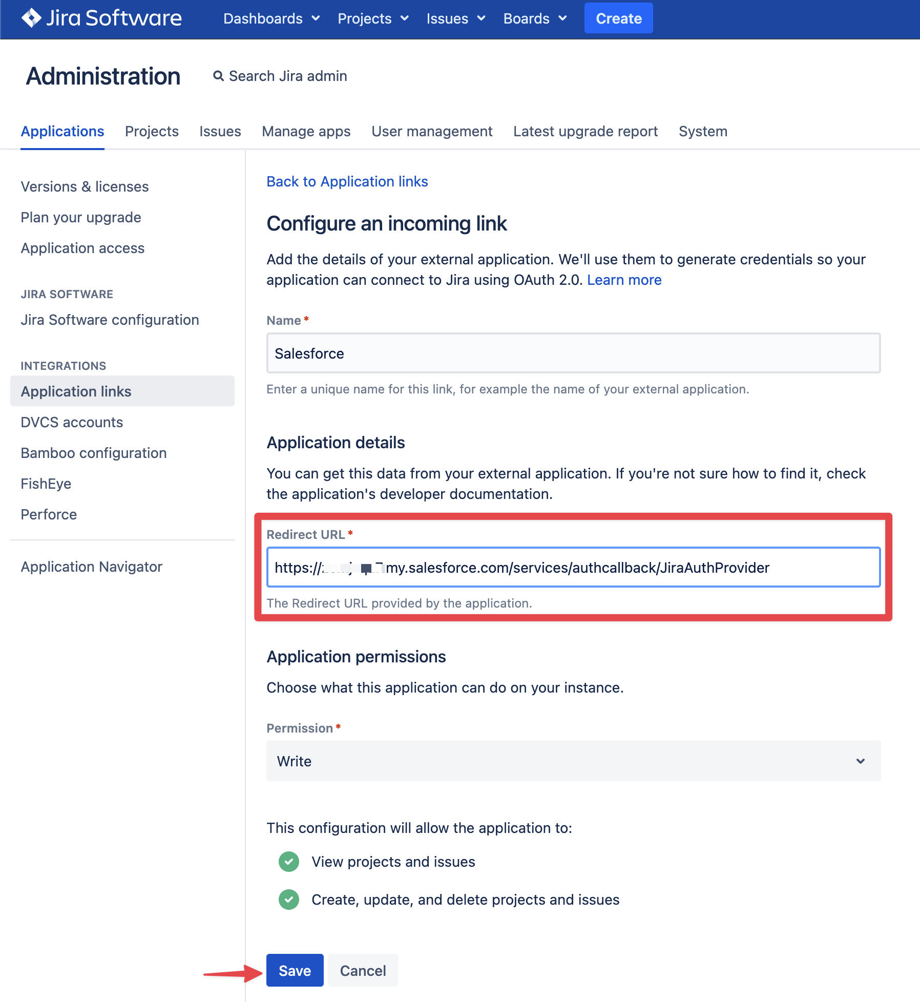 Create an Auth. Provider in Salesforce Setup (for more details on Salesforce Auth providers refer to AuthProvider ). This Auth. Provider will allow Salesforce users to authenticate to Jira using OAuth 2.0. Use the following parameters: