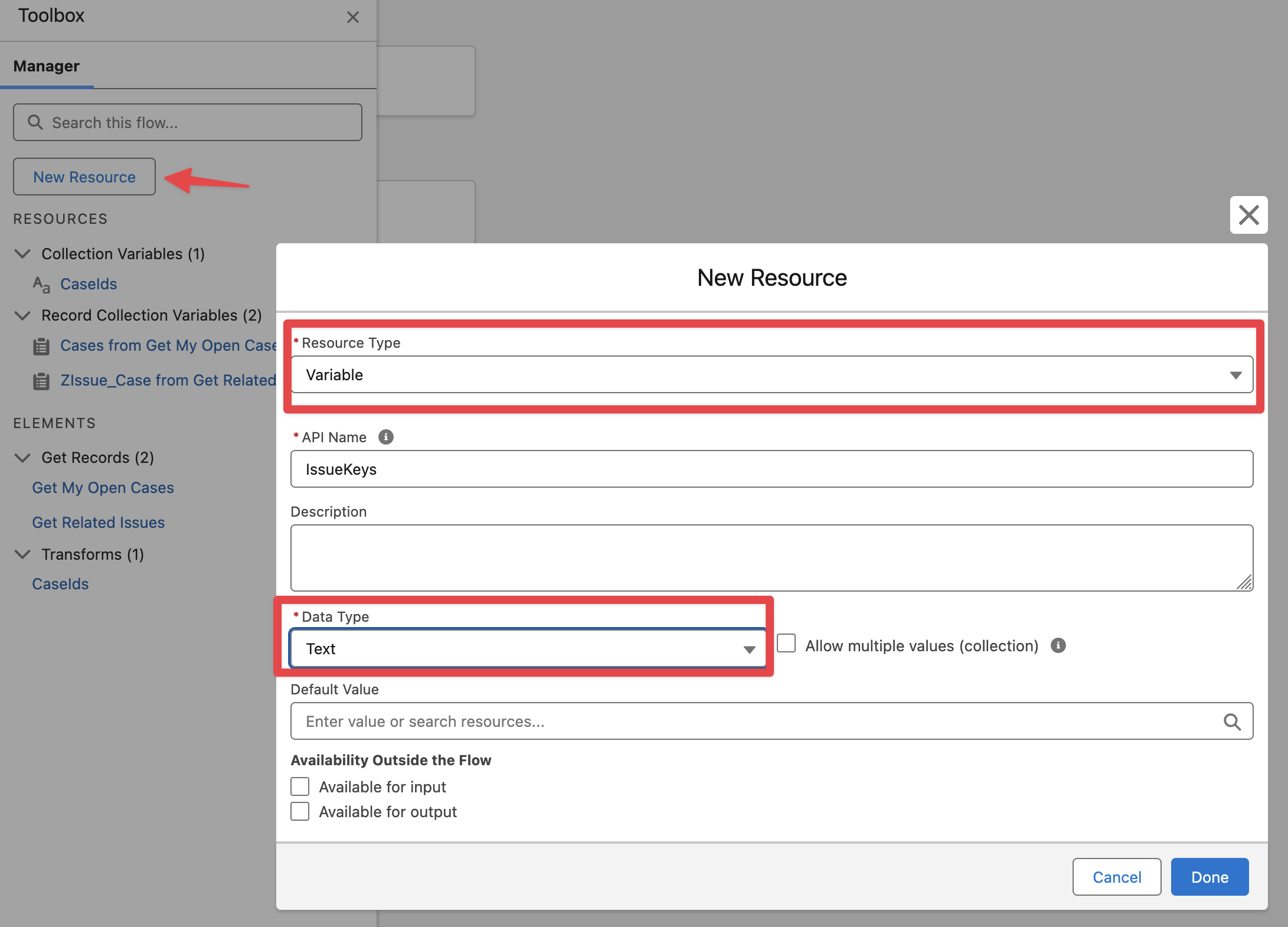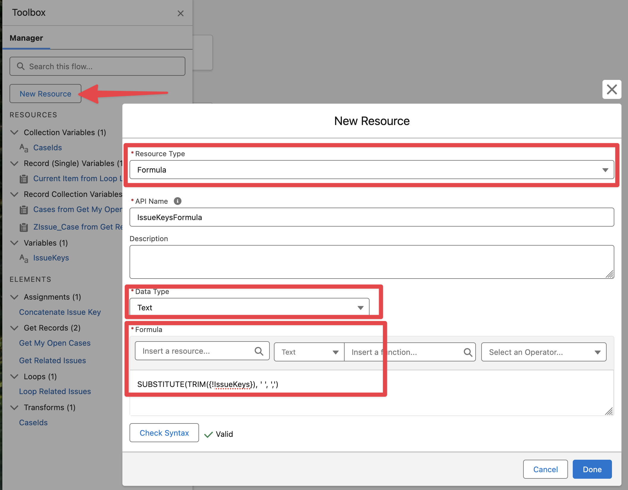 Add a Text Variable resource to concatenate the Issue Keys into a String