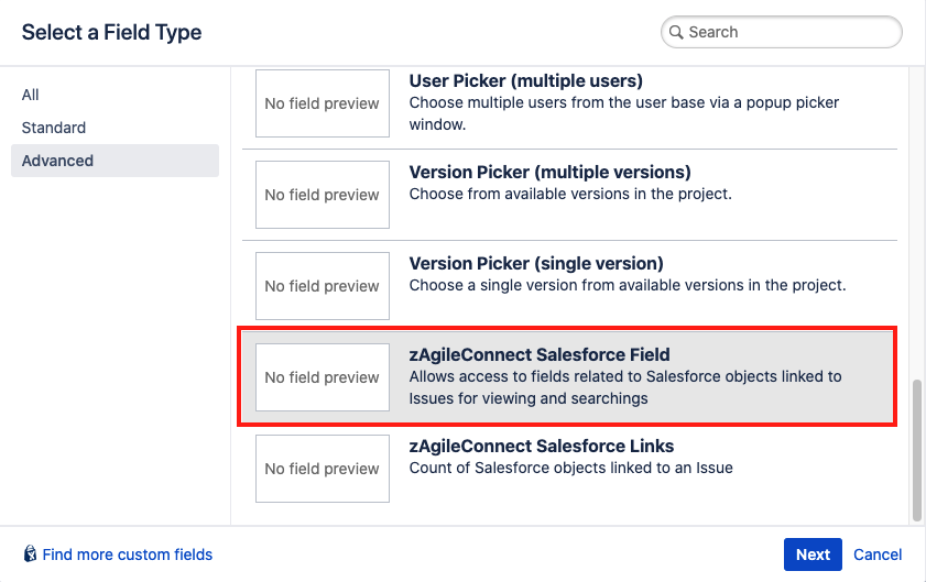 The type of this custom field must be "zAgileConnect Salesforce Field"