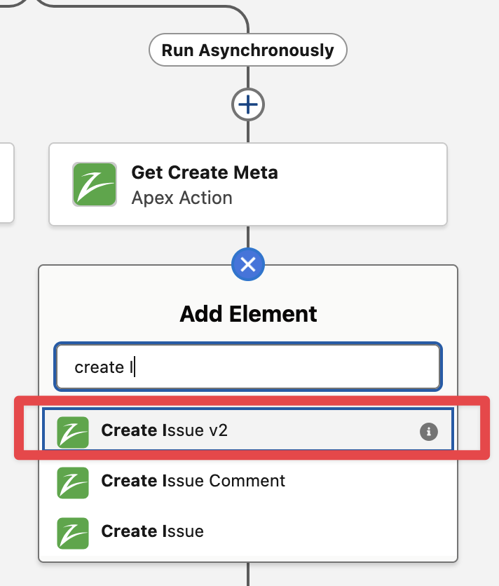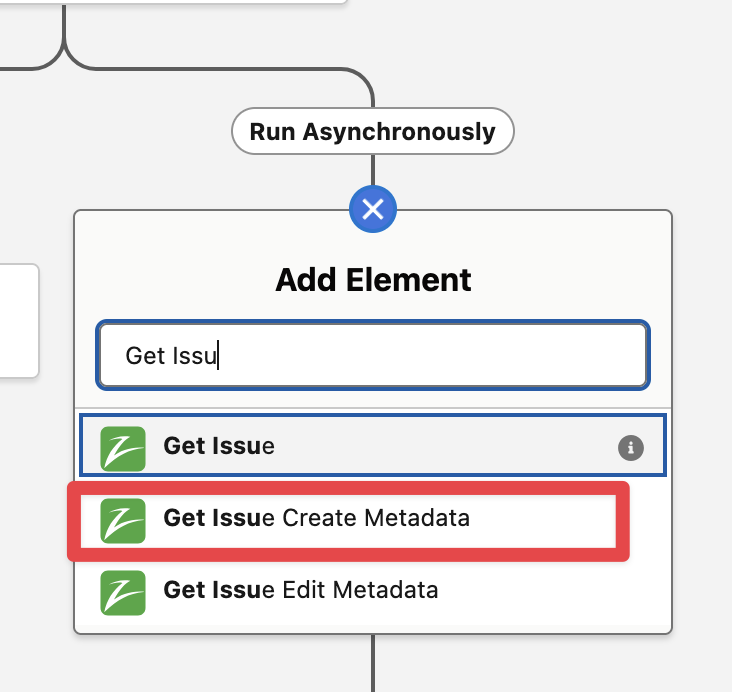 In the Asynchronous path add the “Get Issue Create Metadata“ Flow action