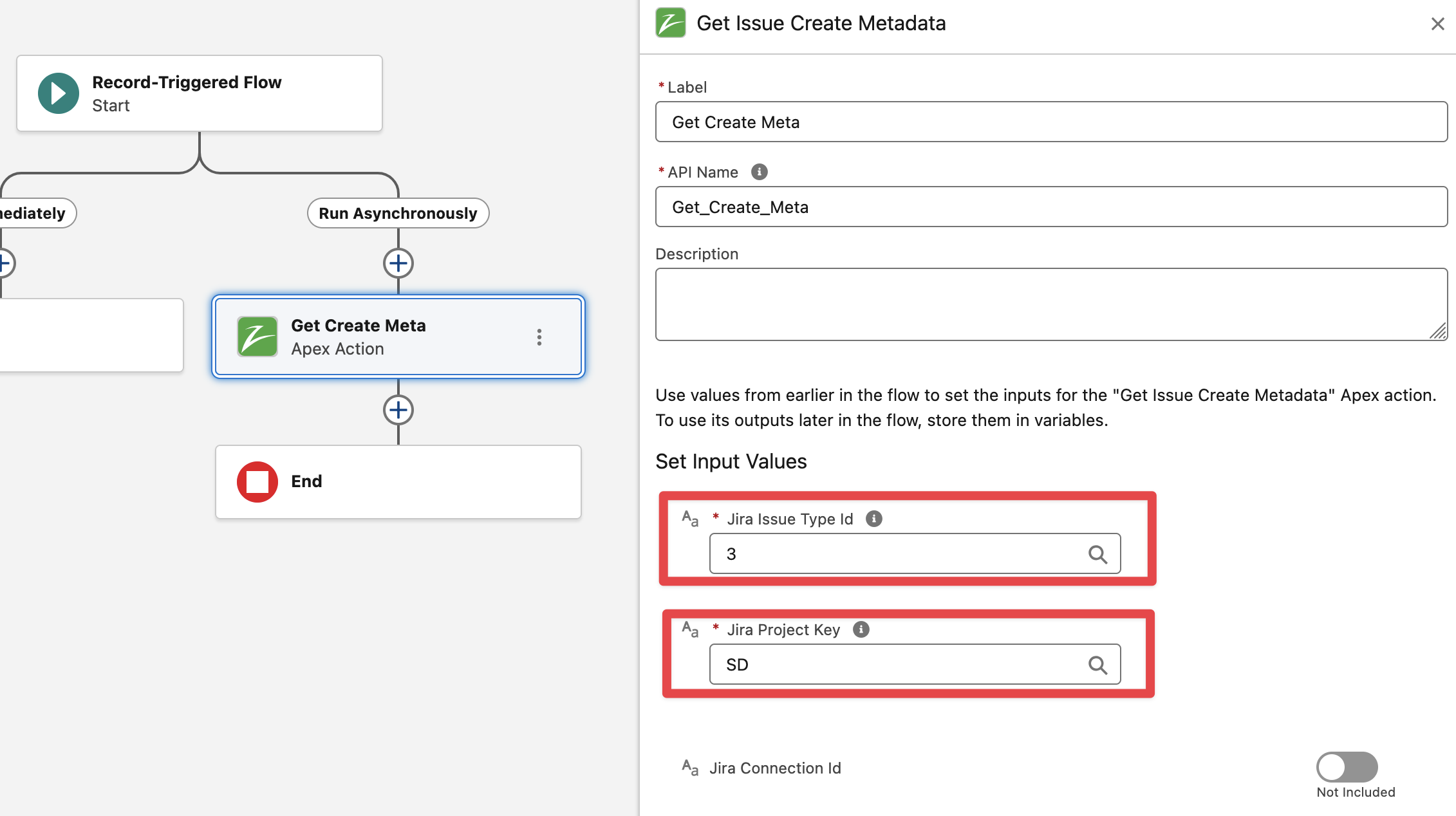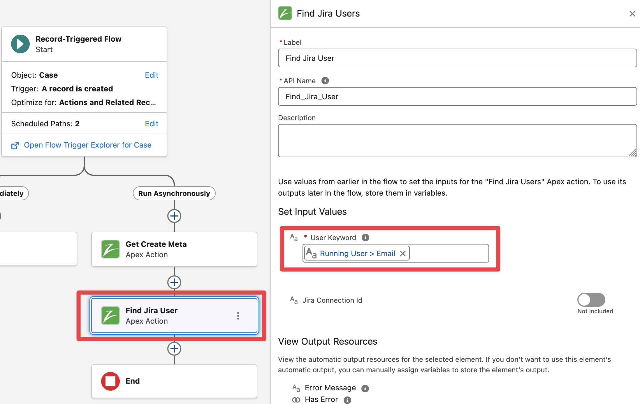 This action makes callouts to Jira and so when using it from “Record Triggered Flows“ make sure to use it from within an Asynchronous Path.
