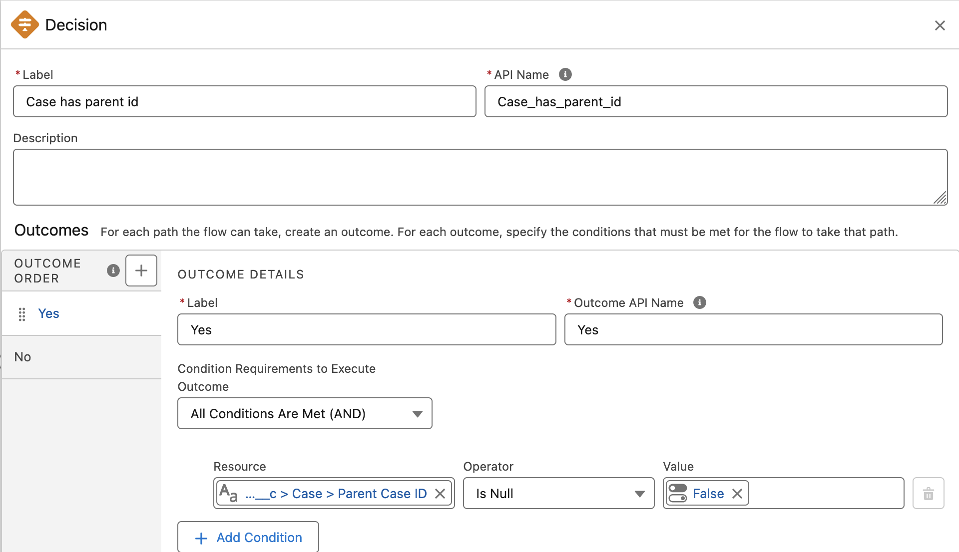 Finally Save and Activate the flow. Then go to a Case that has a parent Case and link a new Issue, open parent Case and verify the same Issue is automatically linked to it.